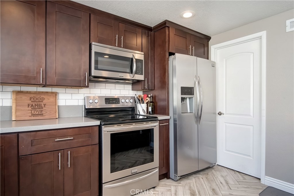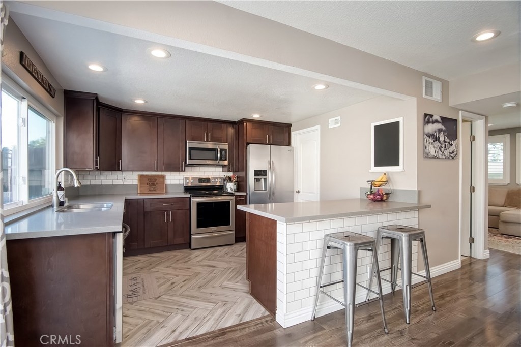 Welcome home to the highly sought after Tanglewood community! This beautifully remodeled Berkley model offers 3 bedrooms and 1.5 baths with 1426 square feet of living space, as well as comfy patio space and 2 car garage, this is just what your growing family is looking for. You’re welcomed in with a beautiful and bright living room that leads you straight into the fully remodeled kitchen that features grey quartz countertops, subway tile backsplash, breakfast bar, and tile floors. The entire home is equipped with laminate flooring, scraped ceilings, recessed lighting, and shutters. Up the stairs you will locate the spacious master bedroom with a walk in closet, remaining two bedrooms, and lastly the remodeled full bath. Home is situated on a quiet green belt with a children’s play area at your door step. Walking distance from parks, elementary schools, shopping and dining, and a few miles driving from all major freeways. AWARD WINNING Cypress school district! This wonderful community with its clubhouses, multiple swimming pools and parks, along side with this beautifully upgraded home are just an offer away from becoming all yours, don’t miss out!