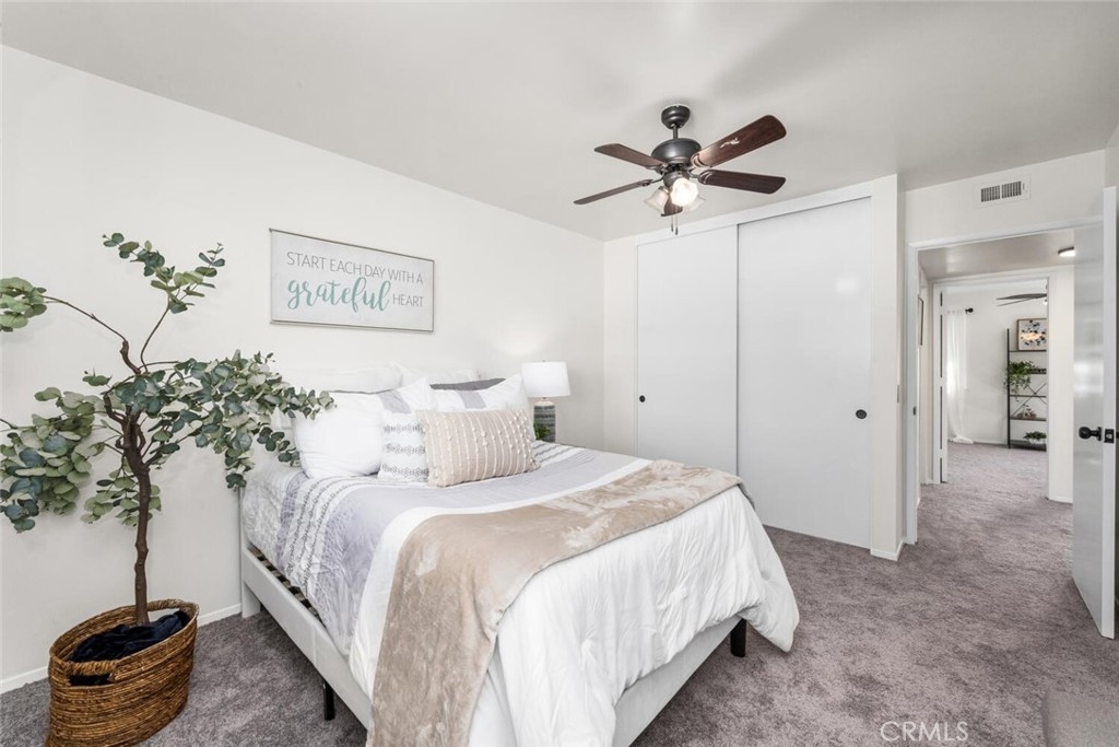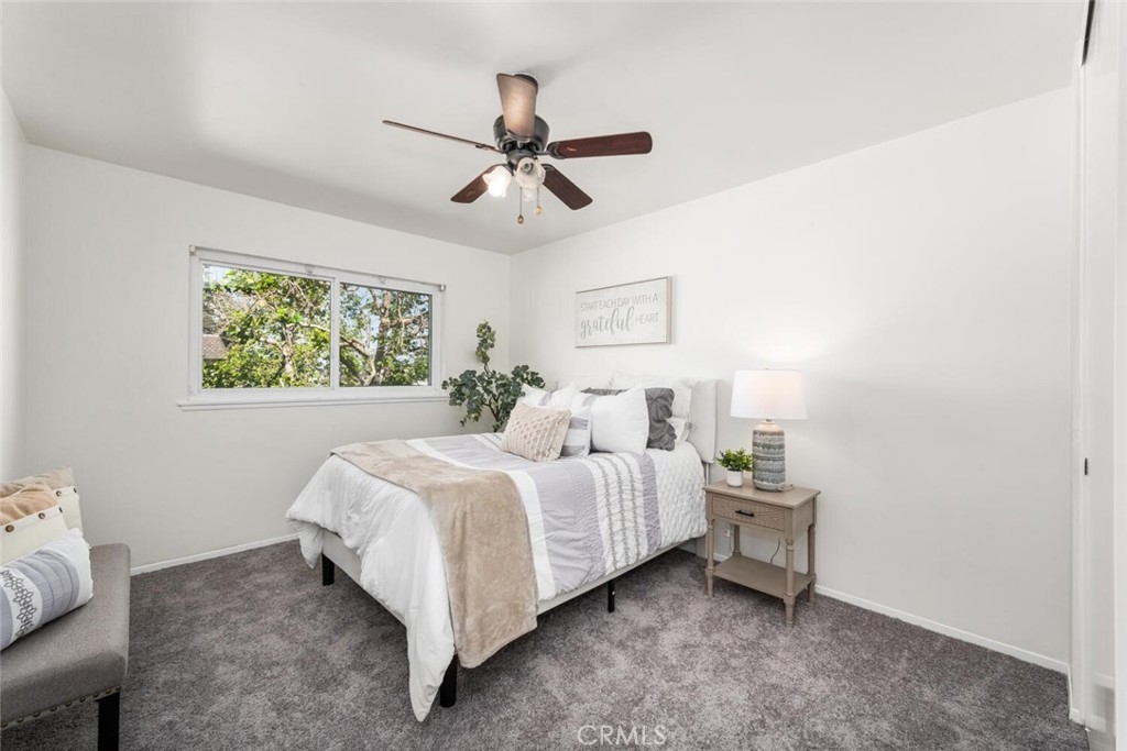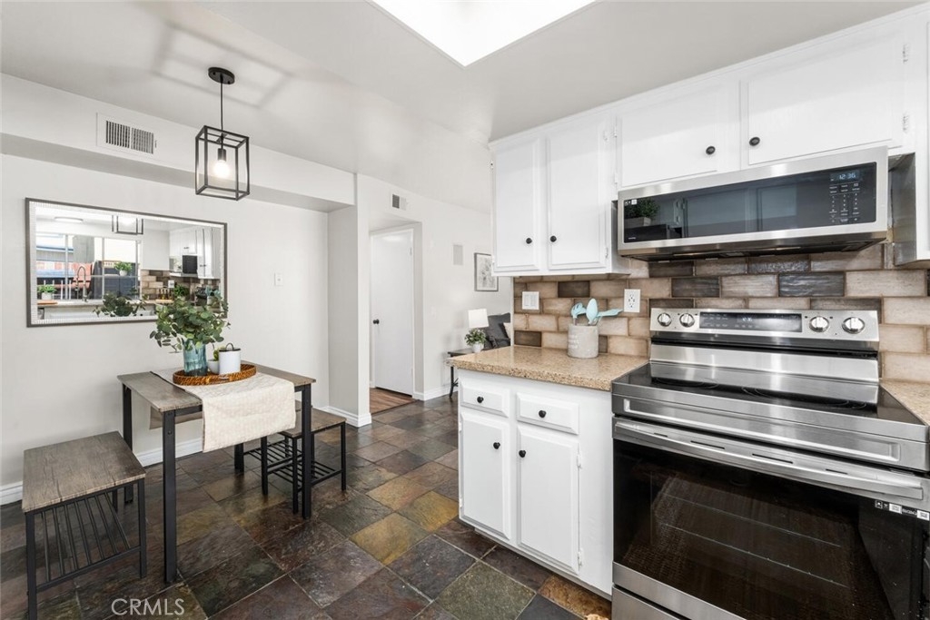 Beautifully Updated Chelsea Model in Cypress Tanglewood IMPORTANT All Tanglewood communities are all electric community. This home has paid for solar, electric car charger , upgraded panel to 200 amp, and tankless water heater. Discover your dream home in the heart of Cypress Tanglewood with this delightful Chelsea model end unit! This beautifully updated residence offers a perfect blend of comfort, style, and convenience, making it an ideal choice for modern living. Step into the spacious and inviting living room, perfect for family gatherings or cozy nights in. The expansive kitchen is a culinary haven, featuring white cabinets, sleek granite countertops, and a cozy breakfast nook for casual dining. For more formal meals, enjoy dining room with ample space for entertaining. The huge master bedroom serves as your personal retreat, providing plenty of room to relax and unwind. The additional bedrooms offer ample space and comfort for family members and guests alike. Additional highlights include a convenient inside laundry room, a private patio, double-paned windows, and scraped ceilings. There's also new carpet and fresh paint throughout, with elegant slate tile flooring in the kitchen and dining room. Plus, owned solar panels ensure energy efficiency and savings on your utility bills. Cypress Tanglewood is a well-maintained, green community with excellent amenities, including pools and a clubhouse. The low HOA fees are an added bonus. Located in the top-rated Cypress school district, this home offers an unbeatable combination of location and educational opportunities. Don't miss your chance to experience the charm and comfort of this exceptional property!