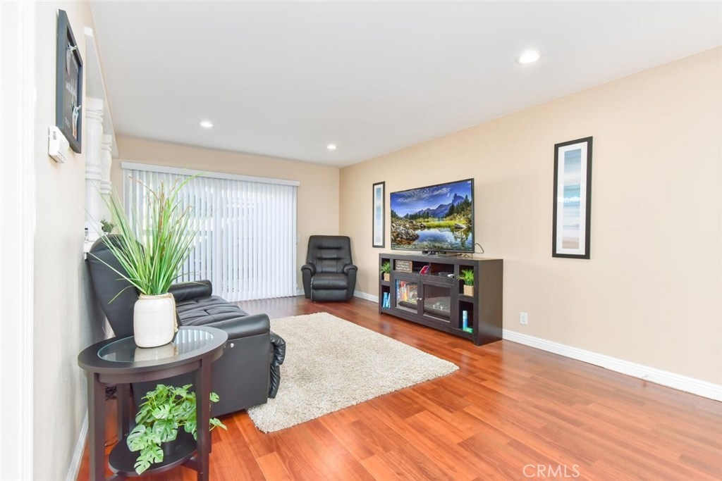 Welcome HOME!!!! Enjoy living in this pristine and bright home located in the highly desirable Tanglewood homes. Lots of adorable features to love including a beautiful white door upon entrance, well-kept engineered wood flooring throughout most of the home, upgraded kitchen with cherry oak cabinets, granite countertops, and stainless steel appliances. It also boasts a modern style bathroom, double-paned windows, separate laundry room, huge coat closet under the stairway with deep storage space, central air and heat, and a nice size patio with pebble stone flooring and additional storage cabinets to keep tools and other items. It also highlights 2 assigned carports directly accessible from the patio. Furthermore, this community prides itself for their great amenities including 3 pools with kiddie pools, 3 playgrounds, 2 clubhouse and the tree-lined walkways and greenbelts, beautifully landscaped and maintained. It is also conveniently located close to parks, grocery stores and restaurants and the award winning Anaheim Unified School district which includes Oxford Academy (must pass the entrance test to quality). Do not wait….check it out before its too late.