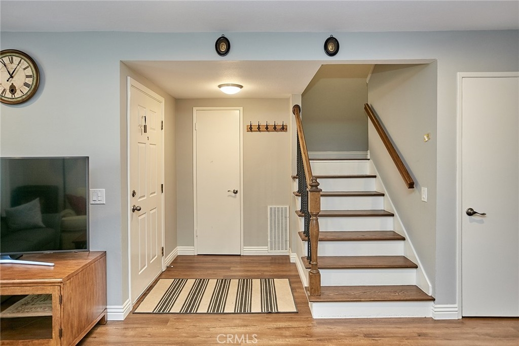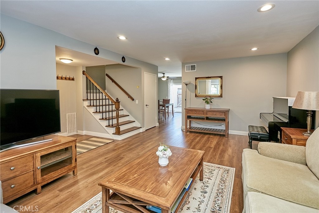 2 story townhouse in "Tanglewood" community. One of the best location in the community - in front of lush green field. This 1508 square feet model is the most popular floor plan in the community. Ground floor has a living room, dining area, kitchen, and bathroom. Dining area leads to the bright and private patio. Extra storage room in patio. All wood floor for the living room, dining room, kitchen, stairs, and 3 bedrooms on the 2nd floor. Kitchen is upgraded with newer counter top, tile back splash, newer stove and dish washer. Large walk in pantry and laundry room conveniently located next to the kitchen. Recessed lighting in living room. All bathrooms are upgraded with tile floor and granite counter top. Master bedroom is big and has 2 closet with its own organizer. Public report shows 4 bed 2 bath but actually 3 bed 3 bath. Seller converted 2 bedrooms into one big master bedroom and put 1 bathroom. Air conditioning ready. Assigned 2 car parking spot, side by side, covered carport. HOA $320 includes insurance with earthquake insurance, trash, landscaping, and maintenance of outside of the building. Owner pays only for electricity and water. Good chance buy and rent. Monthly rent will about $2800 per month. This gem will not last long on the market. Hurry up for showing and offer. Submit offers by Monday 5:00pm. Offer will be reviewed on Tuesday.