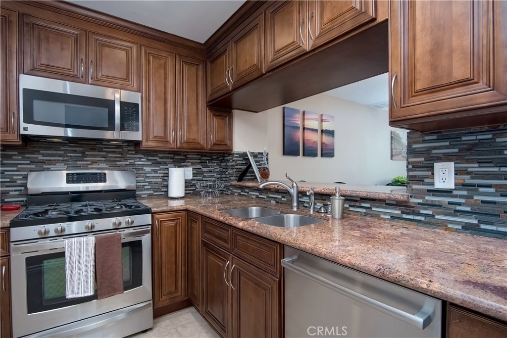 Enjoy beautiful, peaceful tranquility in this community on the water. This is a gorgeous, turnkey condo featuring 2 bedrooms, 1.5 bathrooms (plus an additional ¼ bathroom in the master) and 993 square feet of living space. This unit has a two-car garage attached by a private, gated courtyard. Beautifully remodeled kitchen with granite countertops and stainless steel appliances. Ceramic tile flooring downstairs, with an elegant, remodeled fireplace in the living room. Private back patio on the water, perfect for romantic dinners and entertaining. Spacious master bedroom with beautiful views of the water and a private sink and vanity area. Brand new carpet upstairs! Central A/C, inside laundry, new blinds, crown molding, recessed lighting, and more! You will love this premium, quiet location in the back of the complex! In addition to the beautiful lakes and rivers, this community features a pool, spa, and barbecue area for more entertaining! Excellent schools!!! Kennedy High School, Walker Jr. High, and King Elementary School. OXFORD ACADEMY eligible with testing!!!