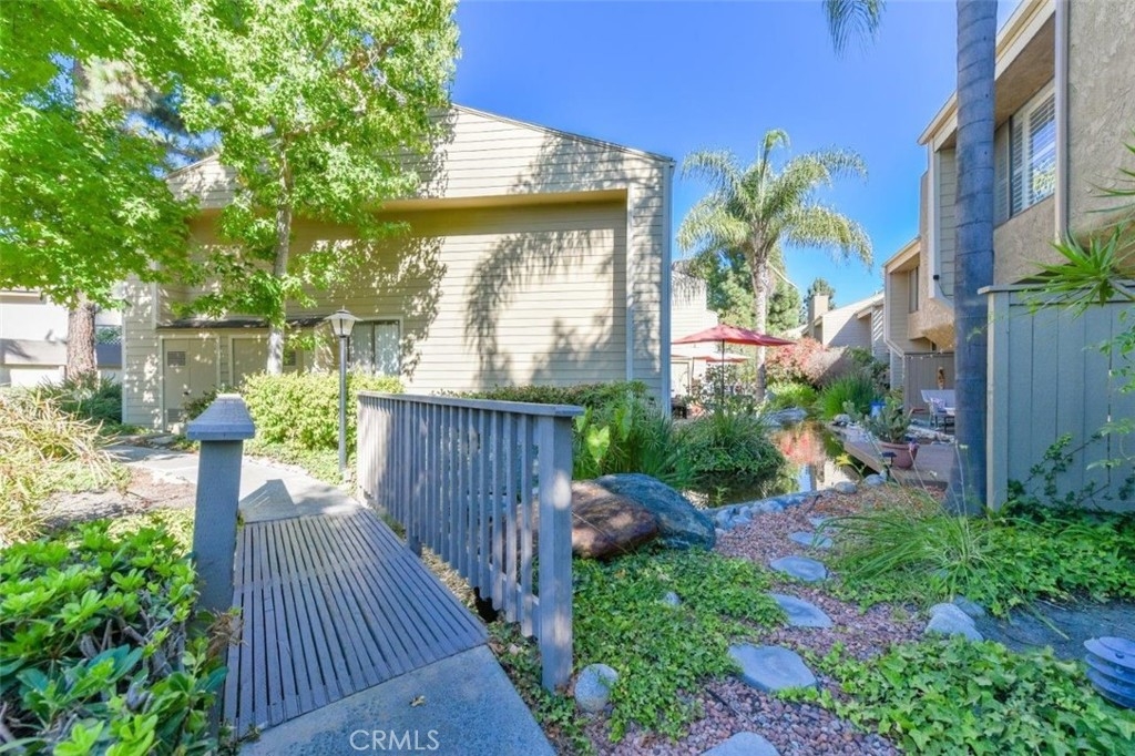 This beautiful home is a hidden GEM in the Cypress. it is located in a very quiet private community next to the community pool. This home has both front yard and back yard. The back has beautiful pond with flowers and plants. This condo is rare in the complex with oversized double deck patio, it is so relaxing and peaceful, it is ideal for sitting in the shady cool back yard for all the activities, having tea or coffee, reading a book, even you can set up a work desk . The whole house has laminate hard wood floor, the living room has fire place ,The kitchen has beautiful custom cabinetry with detailed craftsmanship and quartz countertops. Upstairs has two bedrooms and a full bath room. The master bedroom has a second patio overlooking the pond. The complex has a sparkling pool, two BBQ areas and lush landscaping. It is close to shopping centers, restaurants, Parks, close to the 91Frwy, and award winning schools.