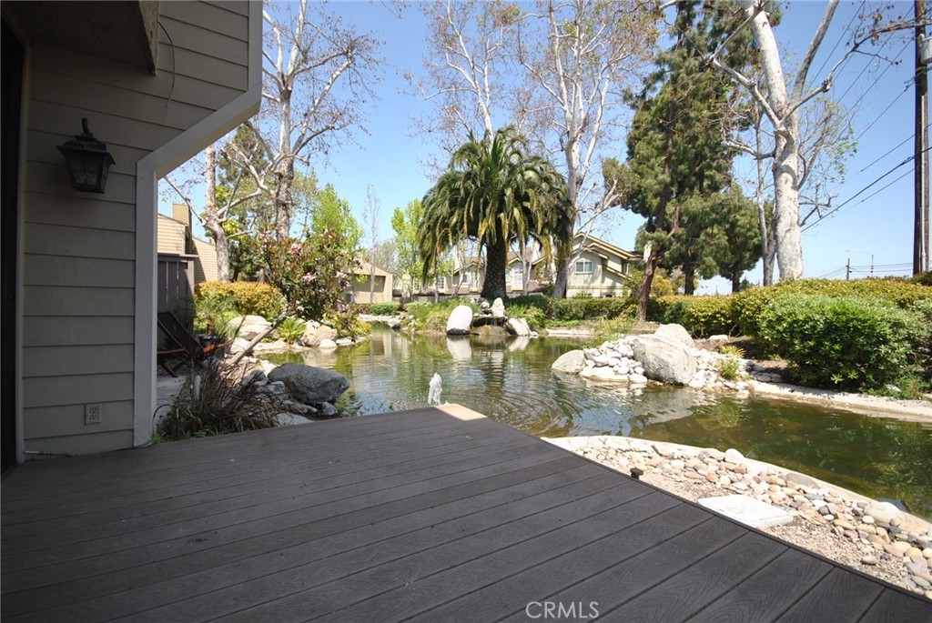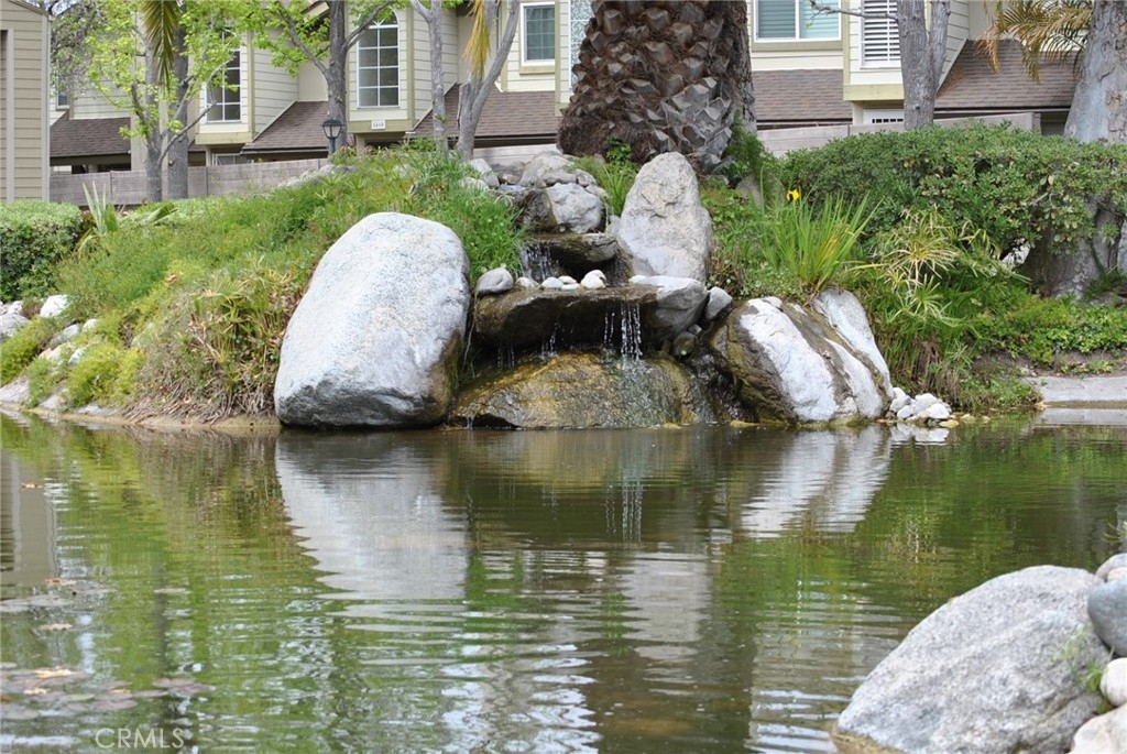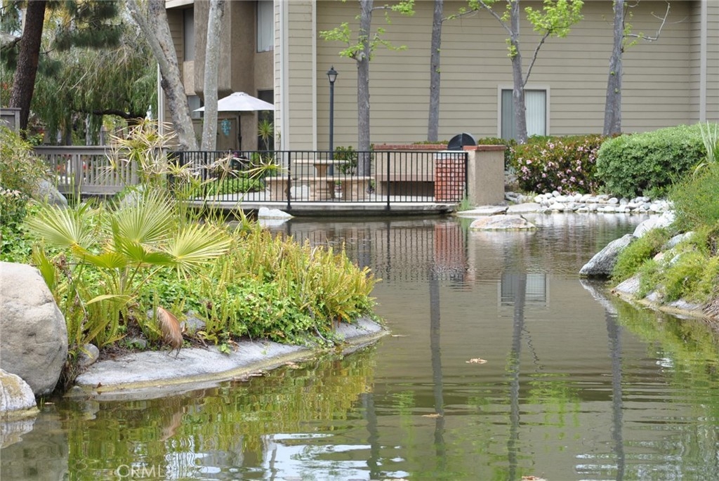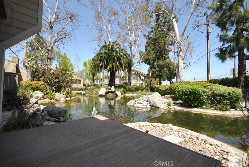 Welcome to the Twin Lakes community of Cypress. The Twin Lakes community offers picturesque views of their ponds and waterfalls right off your back patio deck. Besides the beautiful ponds and streams the association also includes a pool, a spa and two barbecue areas. This two bedroom, one and half bath home features a private front patio, central air conditioning, a kitchen with breakfast bar and laundry area. A large living room with a cozy fireplace that looks out through the large sliding glass doors onto the gorgeous views of the lake, a waterfall and it's wild life of ducks, koi and turtles. There is a half bath down stairs and a full bathroom upstairs. The master bedroom has large mirrored closet doors and a private vanity area with a direct access door to the full bath. The full bath features a high ceiling with natural light and glass sliding tub/shower doors. The nice size second bedroom also has mirror sliding glass closet doors and could be a wonderful office space. The detached large 2-car garage is close to the unit and has built-in storage shelves. At $589,900 this is the most affordable home in Cypress.