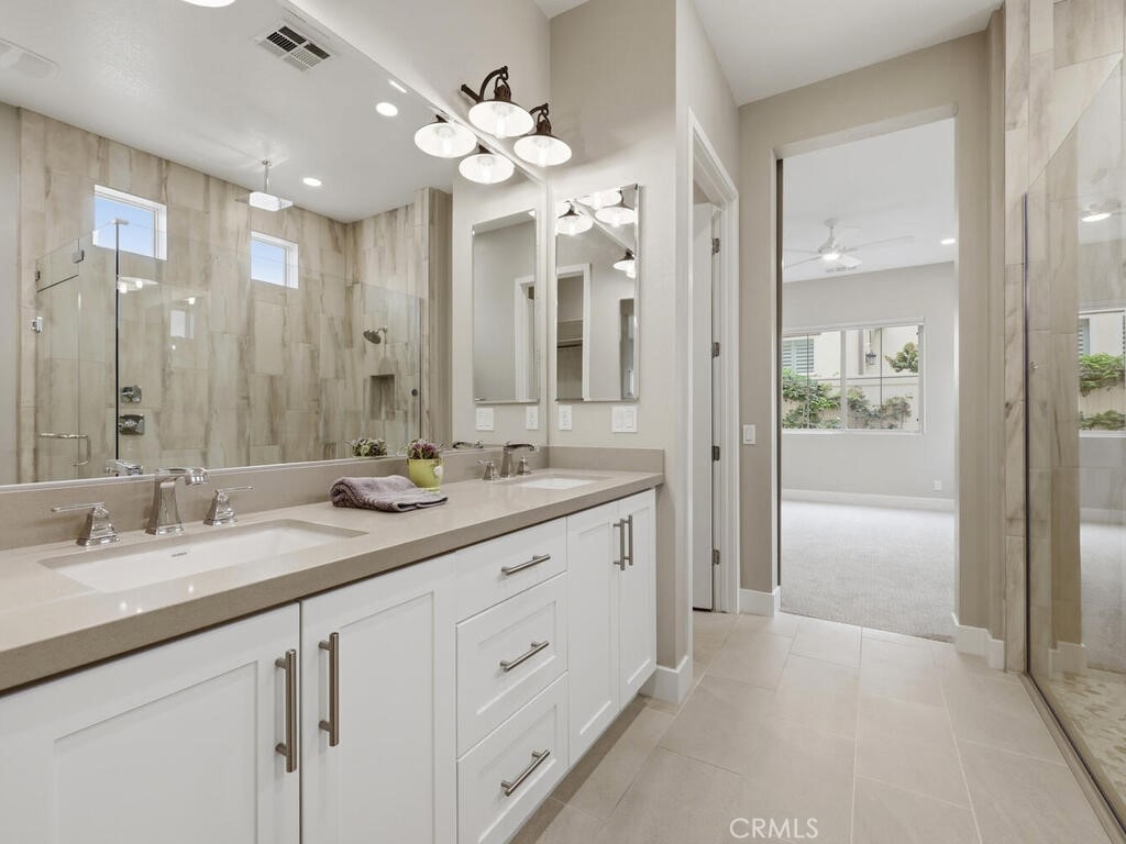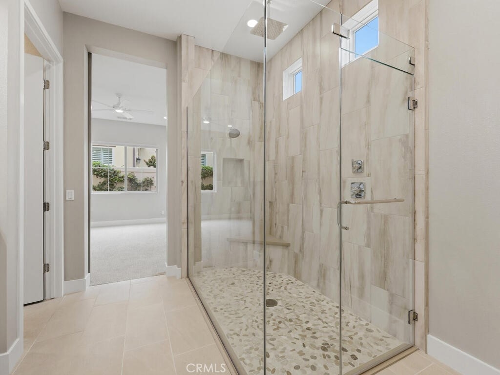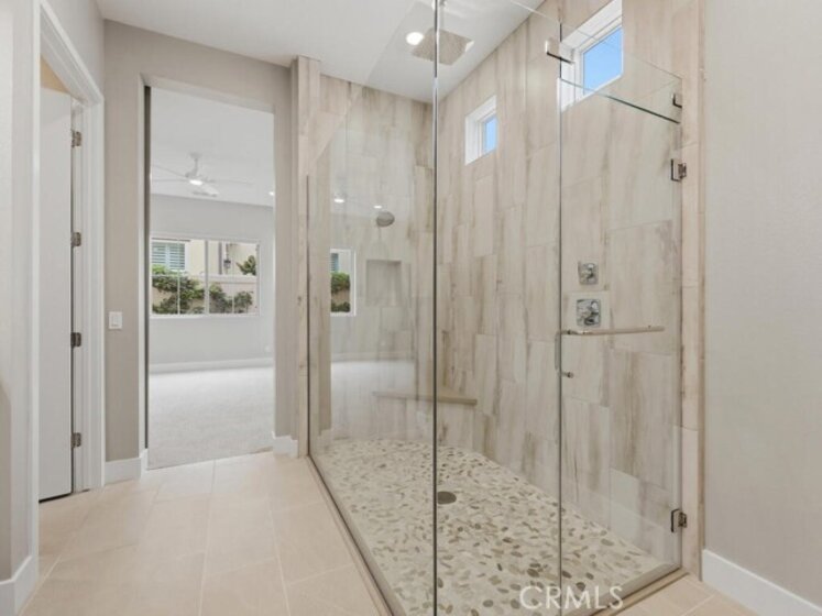 Welcome to 10866 Rojo Court, a fantastically maintained active senior residence tucked away on perfectly quiet motor court in the heart the prestigious Ovation at Flora Park. This is the very popular plan 4 in the Jasmine phase of William Lyons flagship community for active over-55 residents. This upscale and inviting home feels almost new and is a perfect blend of comfort, style, and elegance. Step inside to discover a bright and light wide open space filled with natural light. Upgrades through out! Custom wood-engineered plank flooring thru all living areas, low pile carpet in bedrooms (brand new in downstairs bedrooms). The custom built entertainment center is the centerpiece of this beautiful home. The zero clearance gas fireplace has both programable color/heat functions, reclaimed barn wood, 65" TV with sound bar, with custom shelving and cabinets for all your needs. The spacious living area flows effortlessly into a well-appointed kitchen, featuring ample cabinetry, generous counter space, a oversized kitchen island and breakfast counter plus ample dining space for a full dining table, perfect for both everyday living and entertaining. There are 2 downstairs primary bedrooms, the main has a gorgeous ensuite bath with a massive 2 person shower, upscale tile and design, there is a walk in closet, private commode closet with top of the line Toto bidet. There is an additional primary and den/office downstairs, powder room and a laundry room with washer and dryer included. Upstairs bedroom and full bath was an excellent upgrade. Outside, the private backyard offers a serene setting for outdoor gatherings, gardening, another custom zero clearance gas fireplace was added, professionally landscaped and hard-scaped, automated sprinkler system, lighting, water fountain and drainage system. A water purification system and tankless water heater are included, fully finished garage with built in cabinets, epoxy flooring and plenty of light. The community area is amazing! head to the photos to view all that is offered at this low Association fee. But just for starters, take in the lap pool, huge in-ground jacuzzi, cabanas outfitted with charging station, a fully equipped gym, yoga studio, banquet hall with a full kitchen can be rented, outdoor firepit, outdoor fireplace, out door TV is provided, pickle ball, boce ball & a pool table. There are classes, events and meetings for each month the events board truly reads like a cruise! Don’t miss this opportunity!