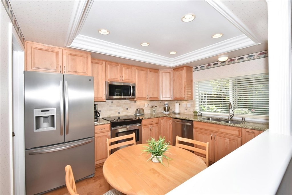 I’m a Berkeley model and a beautiful one too. I’ve been around for a while so it’s safe to say I know what I’m talking about. I may not be the biggest one in Tanglewood, but nothing can beat my location - right on a huge, lush greenbelt in the renowned Los Alamitos School District. I have to admit - I had some work done on me. Laminate floors throughout the first floor, recessed lights, all new double pane windows and interior doors, beautiful front door, copper plumbing, smooth ceilings and crown moldings. I had a fireplace put in my living room and upgraded my stair railing. I don’t regret a single dollar though. I’m perfect. People say I’m “hot stuff”. I don’t really know why. My A/C is in perfect condition! And my interior is cool and inviting. Now that I’m thinking about it, they might be talking about the fireplace in my living room. It gives such an amazing sense of warmth and coziness anytime you decide to use it. I absolutely love my 3 bedrooms and 1.5 baths but my heart lies in the all remodeled kitchen and a huge, separate pantry. New cabinets galore, pull out shelves and extras, amazing granite countertops and a travertine backsplash - need more? I had lights put under the cabinets and made sure all appliances were stainless steel. My dining room overlooks a tranquil patio - we can have coffee in or outside, the choice is yours. Just make it a quick one. I’m not easy, but won’t last long!