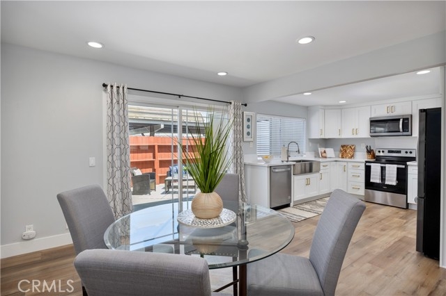 Simply Alluring! Nestled in one of the most coveted neighborhoods of Cypress, this two-story townhome seamlessly blends modern elegance with cozy charm. The spacious living room, dining area, and kitchen flow together, creating an inviting atmosphere. The kitchen features gleaming quartz countertops and pristine white cabinetry, with a convenient washer/dryer hookup nearby. Ascend to the second floor, where generously sized bedrooms await, each illuminated by recessed lighting, with smooth, scraped ceilings. The upgraded bathroom is a sanctuary, boasting a touch sensitive mirror, full shower and a separate jacuzzi jet tub, perfect for unwinding. Throughout the home, vinyl laminate wood flooring, recessed lighting, and scraped ceilings add a touch of sophistication. This home is equipped with a Nest thermostat, doorbell, and a backyard camera, ensuring safety and peace of mind. Additionally, it boasts an updated water heater and an outdoor HVAC unit, both only three years old. Step outside to the serene patio, complete with storage cabinets and direct access to the two carports. This home is part of a community that offers excellent amenities, including three pools, two wading pools, three playgrounds, and two clubhouses, all set amidst tree-lined walkways and greenbelts. The beautifully landscaped and maintained grounds are conveniently located close to parks, grocery stores, restaurants, and an award-winning school district, which includes Oxford Academy (entrance test required). This exquisite home is more than just a place to live - it’s a place to create memories, find comfort, and truly call HOME. Don't forget to click on the 360 above for a virtual tour. --