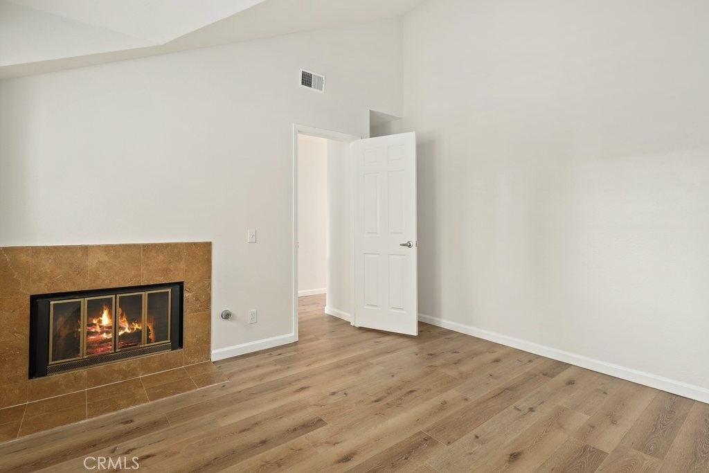 Completely remodeled, this Cambridge Commons condo is move-in ready! Warm vinyl wood floors, plantation shutters and fresh neutral paint throughout complement the bright and open floorplan. Enter into the inviting living room, featuring a cozy stacked stone fireplace, that seamlessly flows to the dinning room and to the kitchen. The kitchen has been upgraded with fresh white cabinets, quartz countertops, stainless steel appliances and offers direct access to the attached two-car garage. Upstairs, the primary bedroom features an en-suite primary bathroom with dual sinks and a luxurious walk-in shower. The secondary bedroom is generously sized offers a second cozy fireplace and direct access to the full hall bathroom. Enjoy the nearby community pool, local dining, shopping and entertainment. Great central Cypress location with easy freeway access and Oxford Academy only a few minutes away. Welcome home!