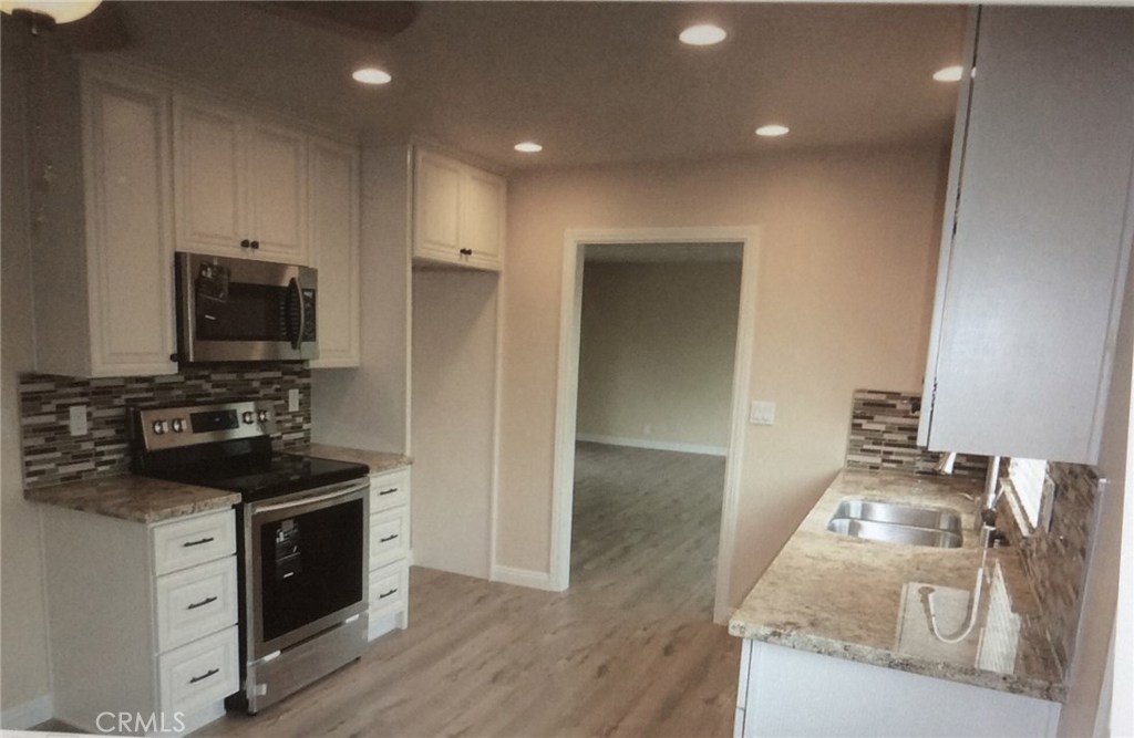 *** Beautiful Starter Home in Highly desirable School District of Cypress!!. This nicely remodeled 1 bedroom 1 bath condo located in the Cypress Monterrey Community offers an open & bright floor plan with nice high end laminated flooring & baseboard all throughout . Dual sliding doors off living towards an inviting balcony or sitting area. The kitchen boasts beautiful cabinetry with quartz countertops , custom backsplash , stainless steel sink & high end stainless steel appliances. Remodeled bathroom with high end fixtures, as well as upgraded dual pane windows and doors all throughout. Interior walls have been nicely textured & painted. ** This corner unit has convenient access to a 2 car garage attached with laundry hookups . Plus Community amenities includes 8 pools & jacuzzies , lighted Tennis Court & BBQ area for those relaxing weekends !!!! Close to schools, shopping , freeways & public Transportation***