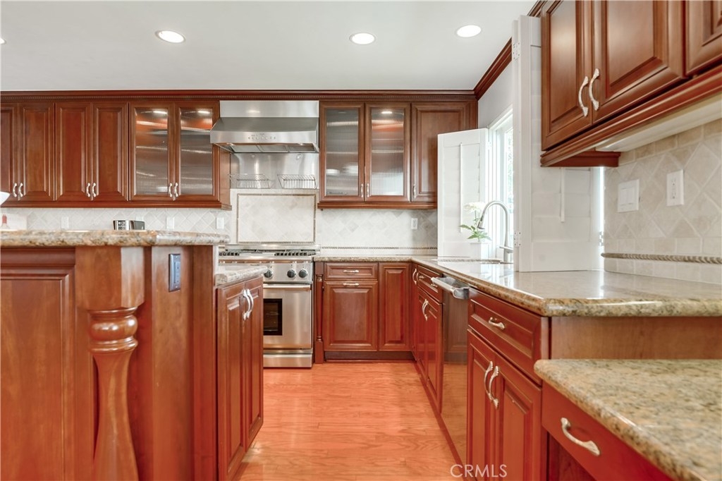 Beautifully maintained Cypress Village Bedford Model!! Create the perfect place to entertain your friends and family on this large front patio, accessible from the side-yard gate which comes complete with an outdoor barbeque Island! Inside you will find stunning, vaulted ceilings, warm and well-maintained oak hardwood flooring, gorgeous crown molding and newly updated dual pane windows. The fresh paint will go well with any décor and is perfect for a move-in ready family. The downstairs den would make the perfect home office or 4th bedroom. The open layout of the home leads you to the kitchen and dining space, which comes with commercial grade appliances (Thermidor Chef) beautiful cabinets, granite countertops and a separate laundry room off the kitchen. Just off the dining area are gorgeous French style patio doors opening to the side yard, perfect for the party to move outdoors on a sunny day! Off the downstairs den is an updated powder room for your guests. Upstairs you will find a spacious master suite (with a beautiful balcony!), fully updated master bath and 2 additional bedrooms with a separate updated bath. New roof in 2017, HOA to repaint exterior this summer. Don’t miss this opportunity to live in Cypress Village with access to community Pools (3!!), large spa, kiddy pool, his/her suanas and several greenbelts and tennis courts!! All of this in an award winning school district all rated 9-10’s!! Fresh exterior paint coming in May 2019 and choose your new color!