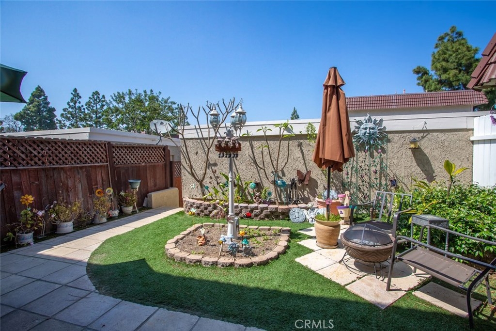SEE VIRTUAL TOUR HERE... https://kuula.co/share/7X4Vg/collection/7lT1b ...Welcome home to beautiful Cypress Village where picturesque tree lined walkways and perfectly manicured green belts flow throughout the complex. This 3 bedroom 2.5 bath townhome has been well maintained and has plenty of upgrades. A private porch and garden leads you into this beautiful home. The spacious and bright living room has recessed lighting, gas fireplace with custom wooden mantle and a slider that looks out to the patio. You'll enjoy plenty of space in the light & bright kitchen w/ quality appliances, single basin sink, granite counters, updated cabinets and recessed lighting. The dining area and kitchen looks out to the beautiful custom stone patio and planters with easy to maintain turf and mature plumerias. The laundry room is situated next to the kitchen. There is also a downstairs powder room with updated vanity and tile flooring. All bedrooms are upstairs with a full bathroom in the hallway shared by 2 bedrooms, one with a walk-in closet. The master suite is bright and spacious, has floor-to-ceiling closets and an updated bathroom with newer vanity and tile floor. This home also features a newer HVAC unit with dual pane windows and sliders. High rated Garden Grove Unified schools 9-10's. Close to freeways, parks, dining & more!