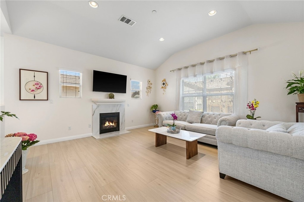 Enjoy elevated living in this beautifully updated two-story townhouse in Cypress, where style, comfort, and space come together seamlessly. From the moment you enter, you’re greeted by soaring high ceilings and upgraded flooring that create an open, airy feel. The inviting living area features a cozy gas fireplace, perfect for relaxing evenings, while the formal dining area offers an ideal setting for entertaining guests. The spacious kitchen with a brand new refrigerator is designed for both function and flow, providing plenty of room to cook, gather, and enjoy. Upstairs, the primary suite is a true retreat, complete with an upgraded en-suite bathroom featuring dual sinks, quartz countertops, elegant gold finishes, and vanity lighting at both mirrors for a polished, modern touch. Two additional bedrooms provide flexibility for family, guests, or a home office. The remodeled guest bathroom stands out with its stylish blue tile and glass-enclosed shower. Additional highlights include an in-unit laundry area for convenience and a private attached 2-car garage. This home blends thoughtful upgrades with everyday comfort ready for you to move in and enjoy.