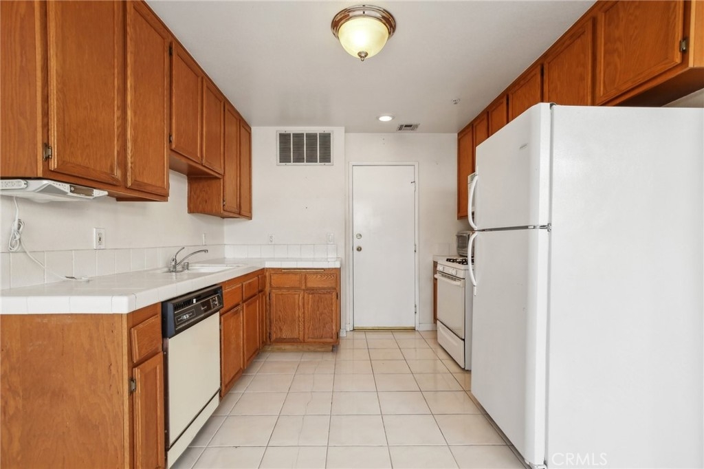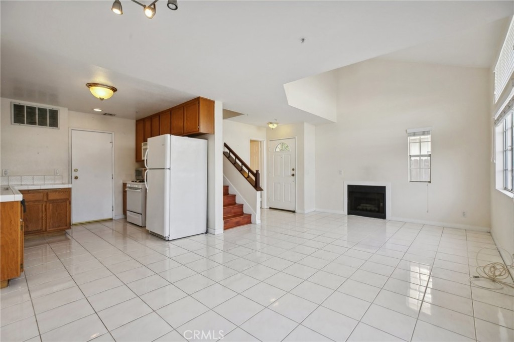 Welcome to Grand Lincoln Village, a private, gated community of townhomes and condos in the heart of Cypress. For the first time in over 30 years, 9026 Grand Circle is available and ready for its new owners. This rare end-unit home offers everything you’re looking for, including 3 bedrooms, 2.5 bathrooms, direct access to a 2-car garage, a private backyard, and over 1,200 square feet of living space. As you step inside, you'll be welcomed by white ceramic tile flooring throughout the first floor, a cozy fireplace, a convenient half bath, and an open living/dining area. The galley-style kitchen features real wood cabinetry, a freestanding gas range, and easy access to the garage. Upstairs, you'll find wood-look laminate flooring leading to two generously sized secondary bedrooms with mirrored closet doors, as well as a hallway bathroom. The primary bedroom is tucked away for added privacy and boasts vaulted ceilings, a walk-in closet, a dual sink vanity, and a shower-over-tub. Best of all, there are no neighbors behind this home, ensuring added peace and privacy. The HOA pool is just a short walk away, and you’ll enjoy the convenience of being surrounded by shops, restaurants, and being within walking distance to Cypress College and Cypress High School. Don’t miss out on this incredible opportunity to own this charming home—schedule a visit before it’s gone!
