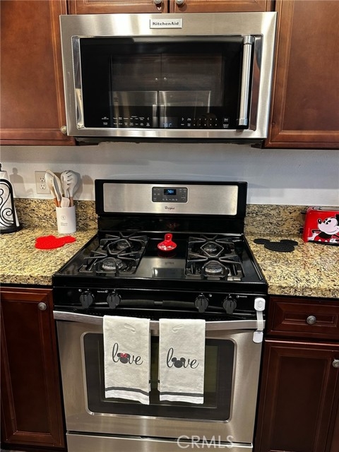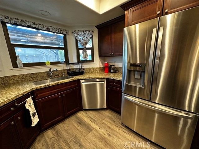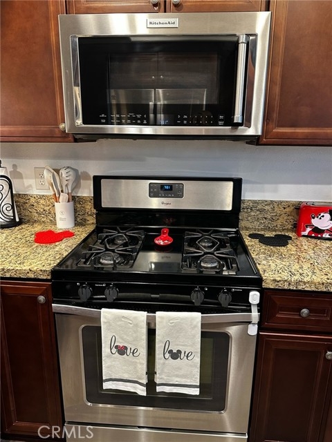 The photos show a darling staged upstairs 2 bedroom home that has all the charm and upgrades your busy life demands. The private upstairs patio welcomes you, the interior has easy care luxury plank flooring, a fireplace, granite counters, ceiling fans, plantation shutters, stainless steel appliances and a separate vanity for the primary bedroom and a walk in closet. This unit also features a separate laundry room. The community area features a lovely pool surrounded by a lush carpet of grass. This unit has a convenient one car garage below and a dedicated covered carport space (#40) for both of your cars. There is fresh new paint and ceiling fans throughout, the stove and refrigerator will remain, just pack your socks and towels.